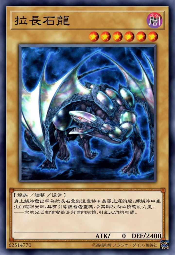 拉长石龙,诚然是一只六星怪兽,自身却并莫得什么刚劲的瑕疵力,而是把2400点的数值皆点在了驻扎力上头。
