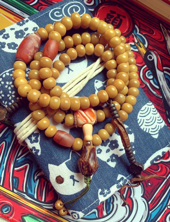 许多旧手串的珠子本人体质可以(比如菩提根、老山檀、星月菩提),但因为配饰(隔珠、佛头、挂绳)老旧或逾期,举座看起来没层次。比如一串原来温润的菩提根手串,配着塑料隔珠和消灭的挂绳,戴在手上显得低价;但若是换上南红玛瑙隔珠、蜜蜡佛头和细密的丝线挂绳,坐窝就能栽种好几个层次,变成细密又专有的表情。