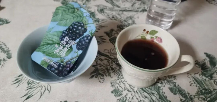 一袋黑莓饮≈90克黑莓,加了40%的秋梨汁。黑莓是酸的,秋梨是甘的,酸甘化阴大略把水协调为津液。