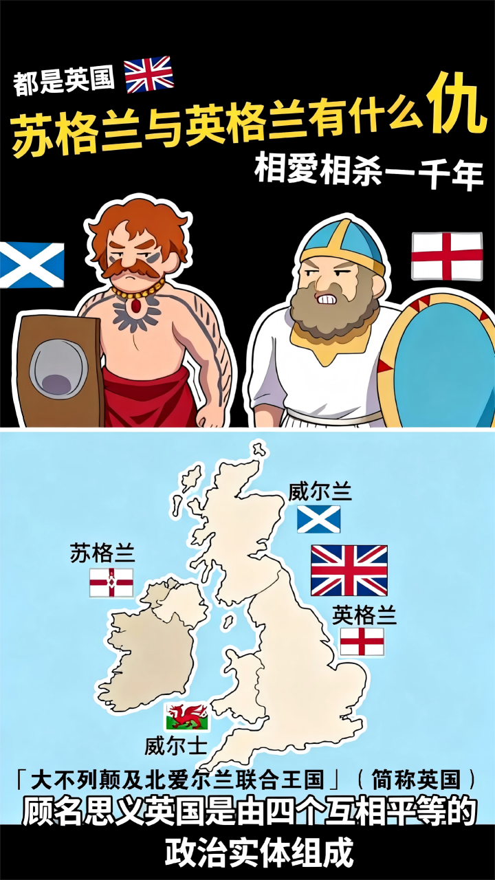 不要被「大不列颠及北爱尔兰聚合王国」(简称英国)这个名字所招引,苏格兰与英格兰,从来就不曾的确地好过。不少东说念主以为他们同处一个岛上,天然是一家东说念主,事实却并非这么,苏格兰东说念主于今仍思着脱离,究其根源,就一个字,钱,何况这事还得回顾到几百年前。
